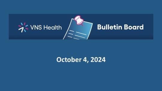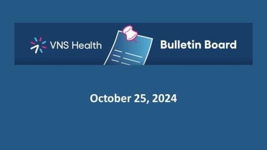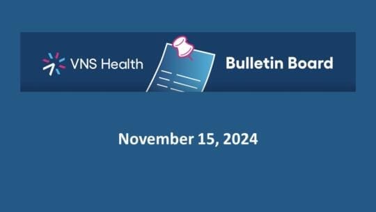 November 15, 2024–Welcome to the Frontline Bulletin Board! Here is the latest news on hires, promotions, recognitions, and events at VNS Health. If you have an announcement that you’d like to be featured on the Bulletin Board, please contact the Communications team at [email protected]. Keep in mind that only items that are relevant to team members across the entire organization will be featured on the Frontline Bulletin Board. Thank you! Were You Unable to Attend the November CEO Zoom This Past Tuesday? Catch a Recording of it Here! This past Tuesday, November 12th, Dan Savitt held his “CEO Zoom Call” for the month of November. We are happy to share the recording of that call with you in case you missed it, or if you just want to hear it again! Click here to listen or watch the Zoom Call now. Crain’s Names CEO Dan Savitt and CFO Keith Patterson as 2024 “Health Care Notables” Congratulations