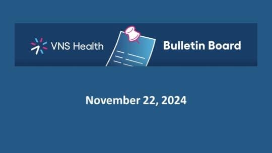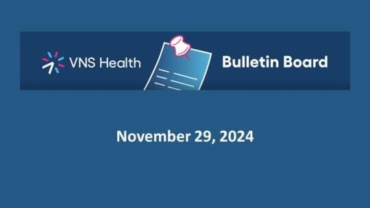 December 13, 2024–Welcome to the Frontline Bulletin Board! Here is the latest news on hires, promotions, recognitions, and events at VNS Health. If you have an announcement that you’d like to be featured on the Bulletin Board, please contact the Communications team at [email protected]. Keep in mind that only items that are relevant to team members across the entire organization will be featured on the Frontline Bulletin Board. Thank you! Were You Unable to Attend the December CEO Zoom This Past Tuesday? Catch a Recording of it Here! This past Tuesday, December 10th, Dan Savitt held his “CEO Zoom Call” for the month of December. We are happy to share the recording of that call with you in case you missed it, or if you just want to hear it again! Click here to listen or watch the Zoom Call now. McKnight’s Names Rosa Marcus, Margaret McDonald, and Grace McGhee as 2025 Pinnacle Awardees McKnight’s has