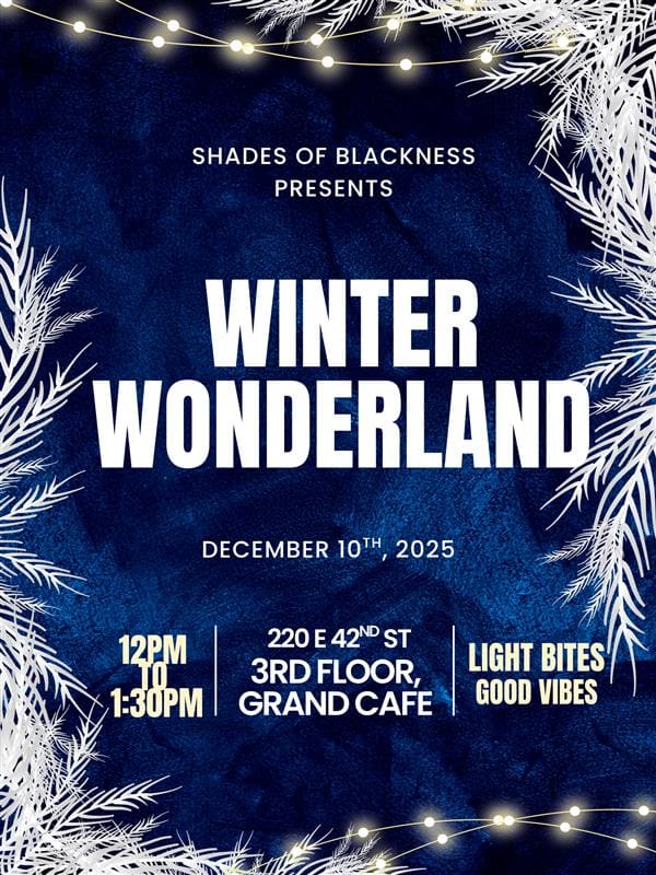 Join the Shades of Blackness ERG for a Winter Wonderland Event on Wednesday, December 10 at 12:00 Noon in the 3rd Floor Grand Café at Our 220 East 42nd Street Office.