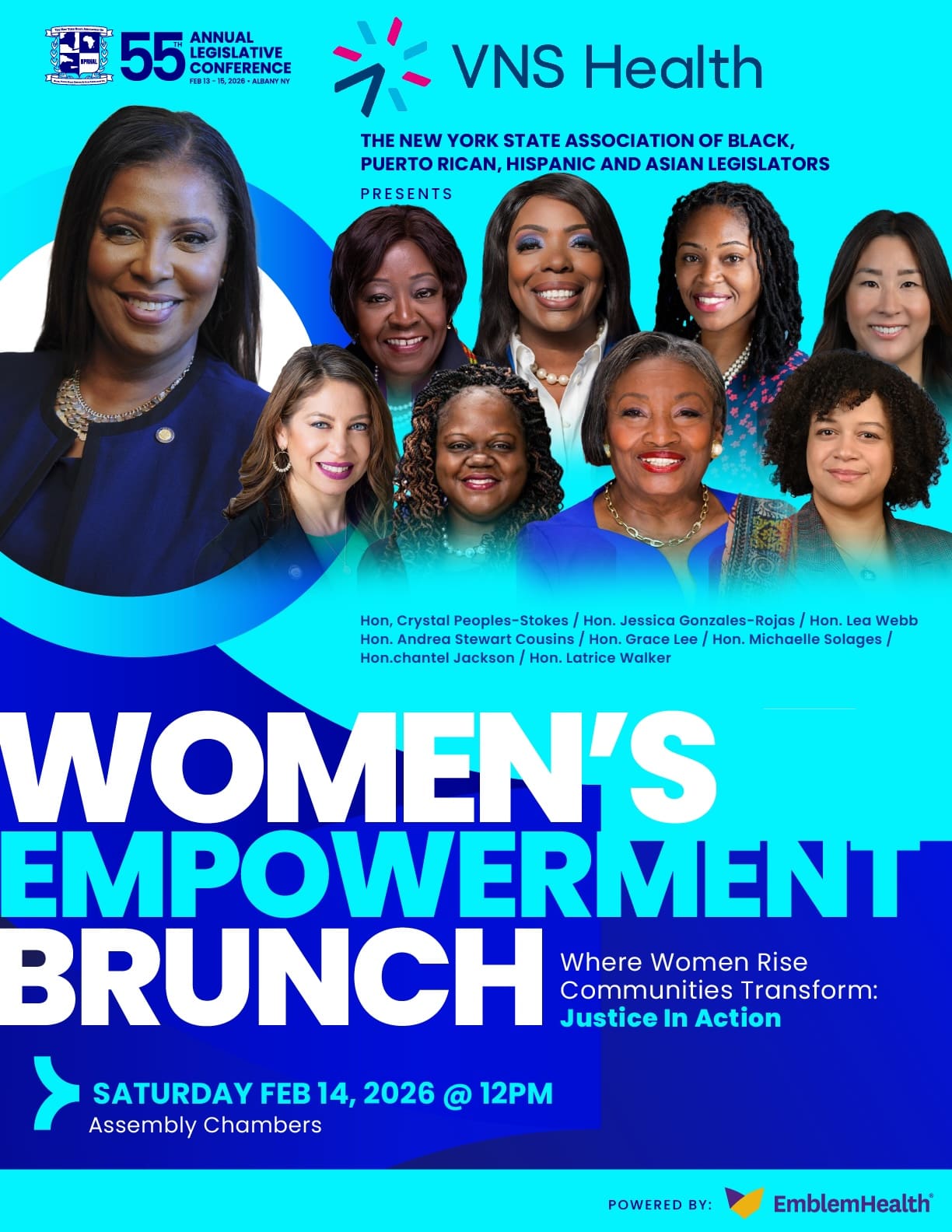 VNS Health co-sponsored the Women’s Empowerment Brunch at the 55th Annual Legislative Conference of the New York State Association of Black, Puerto Rican, Hispanic & Asian Legislators (NYSABPRHAL). At the brunch, held in the New York State Capitol Building’s Assembly Chambers on February 14, NAACP National Board of Directors Vice Chair and VNS Health Board Member Karen Boykin-Towns delivered the keynote address, sharing personal reflections on leadership and highlighting what VNS Health’s home- and community-based care truly means to New York families. See the video of her remarks below.